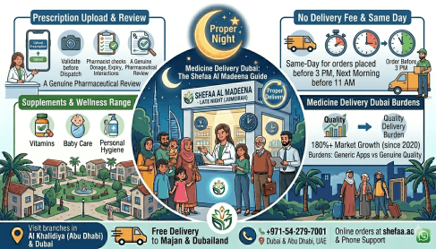 Dubai's pharmacy delivery market has grown by more than 180 percent since 2020. Almost every major pharmacy chain now offers home delivery, and a dozen delivery apps have entered the space. The market is crowded. What is not crowded is genuine quality — deliveries fulfilled by licensed pharmacists, prescription checks that actually happen before dispatch, medications stored and transported correctly, and a human being to call when something goes wrong.