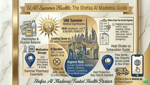 UAE summer is not just uncomfortable — it is medically significant. Temperatures regularly exceeding 45 degrees Celsius combined with high humidity in coastal areas create conditions that can overwhelm the human body faster than most people expect. Heat-related illness is one of the leading causes of emergency department visits in the UAE between June and September. Most of these cases were preventable.